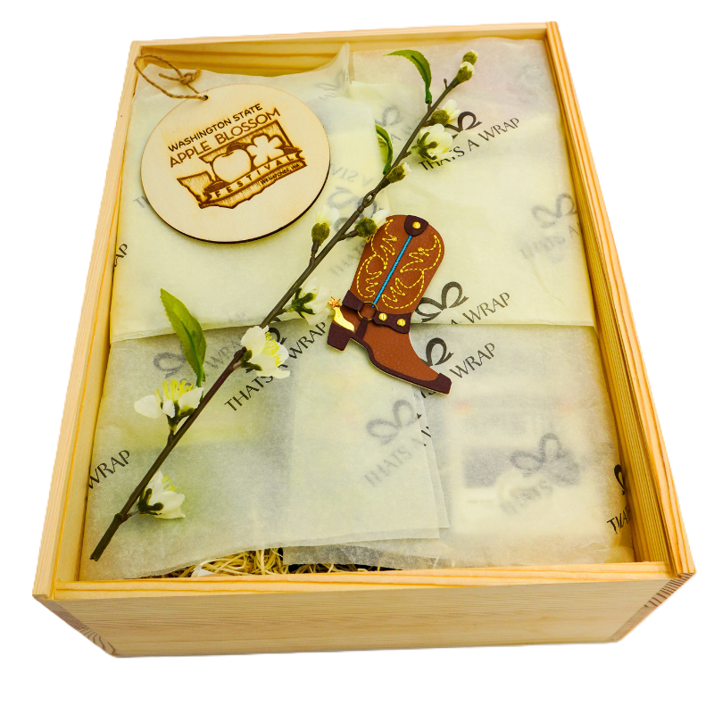 Bring the heart of the Wenatchee Valley right to their doorstep. Inspired by the annual Apple Blossom Festival that has brought the community together for over a century, this gift box captures the essence of the Valley —from orchard to artisan! Whether you’re sending a taste of home to someone who’s moved away or surprising a long-time festival fan who returns year after year, this gift is a heartfelt way to share the joy, tradition, and small-town magic of the Apple Blossom Festival. NON-ALCOHOLIC OPTION AVAILABLE – PLEASE REQUEST AT CHECK-OUT.
